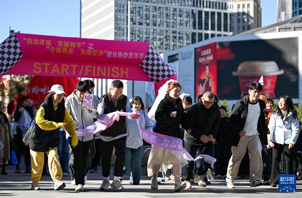 當日,由天津市和平區民政局主辦的“悅動津城·美麗和平” 之 “全城熱戀·為愛狂奔”婚紗趣跑嘉年華活動在和平區金街步行街舉行,吸引了數十對情侶參加。