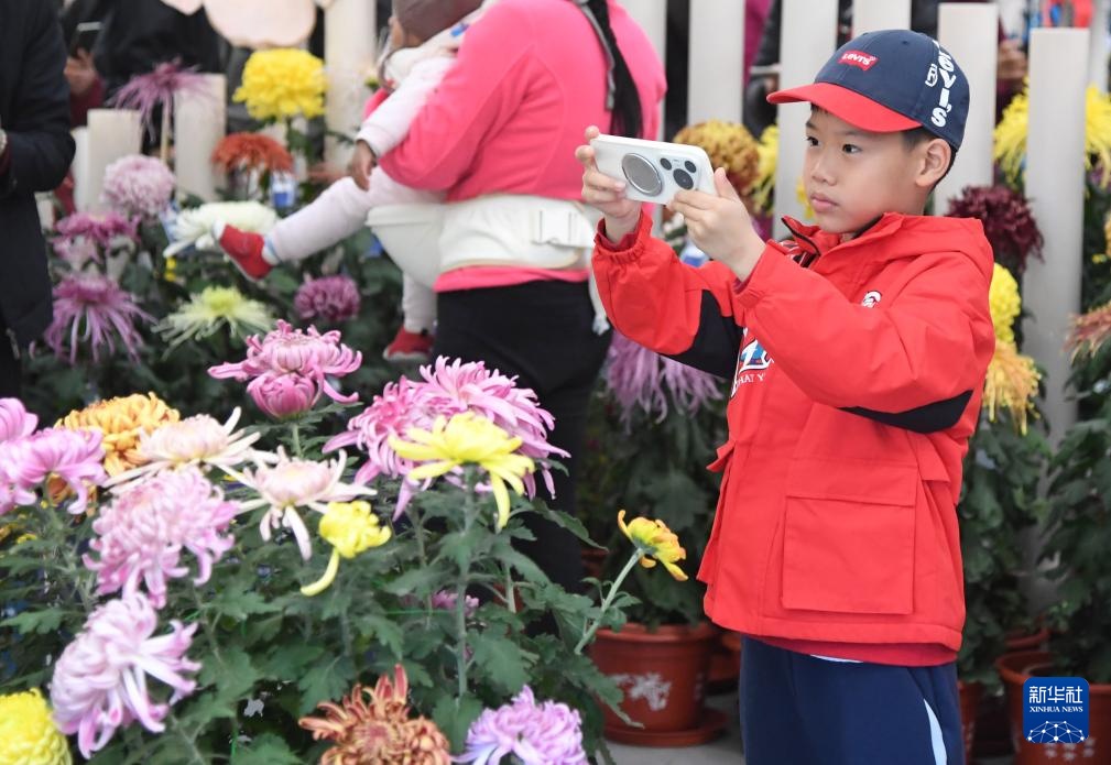11月2日,游客在北京世界花卉大觀園欣賞菊花。
