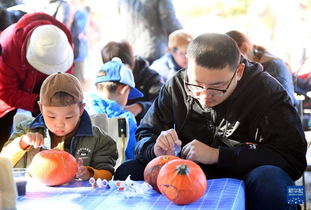11月2日,游客在北京世界花卉大觀園體驗(yàn)?zāi)瞎贤盔f。