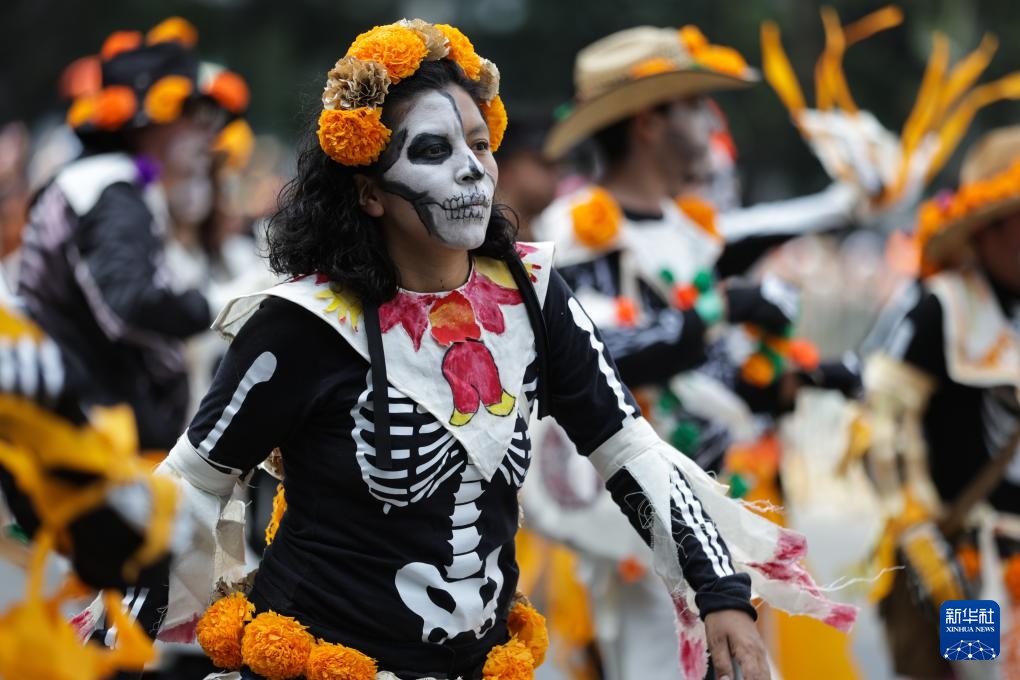 11月1日,在墨西哥首都墨西哥城,演員參加亡靈節游行。