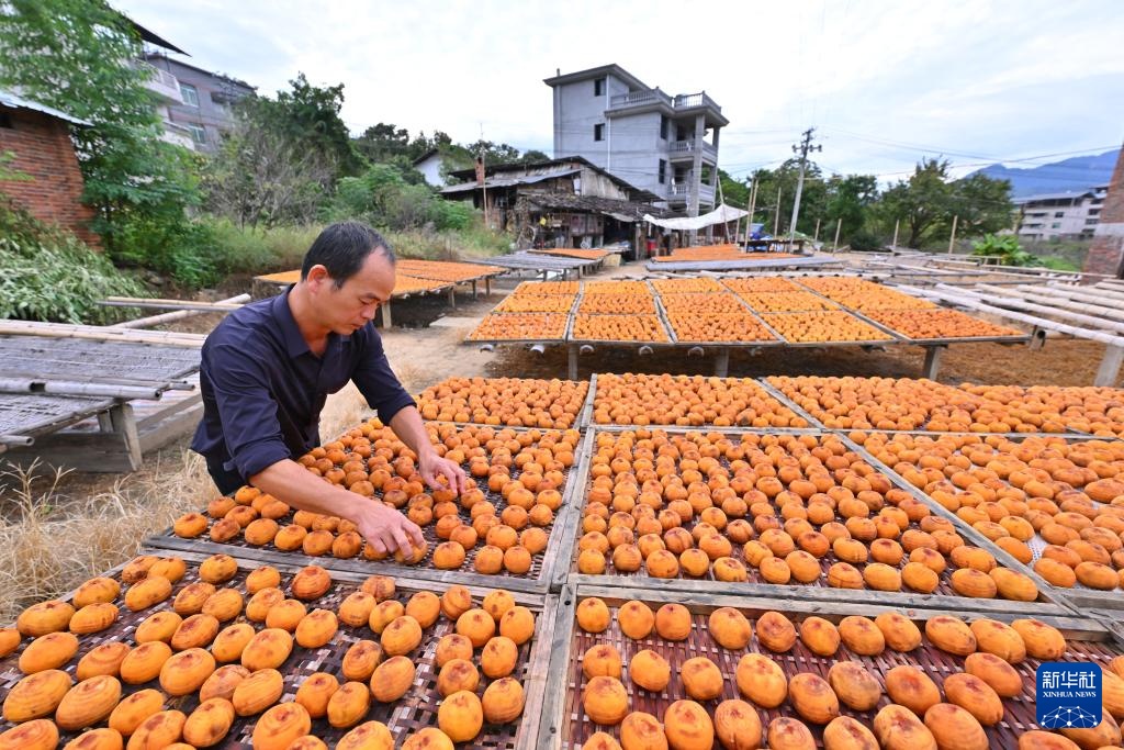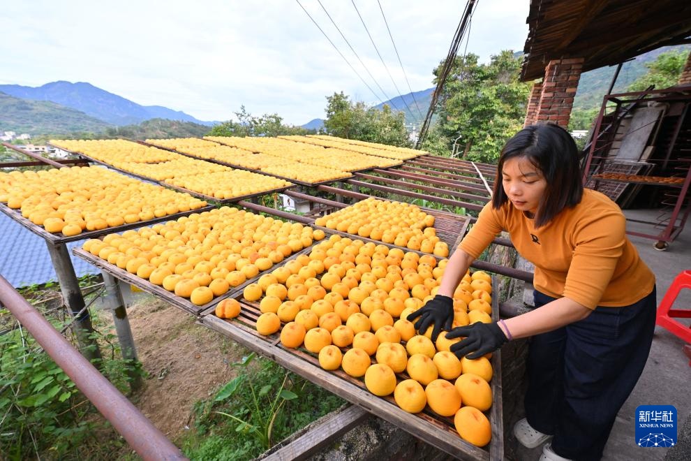 金秋送爽,福建福州市永泰縣梧桐鎮迎來了繁忙的柿餅加工時節,人們趁晴好天氣,將削皮后的柿子擺在房前屋后晾曬,金燦燦的柿子與村落、青山相映,勾勒出秋日好“豐”景。晾曬好的柿餅圓潤飽滿,入口軟糯,是當地傳統特色美食。