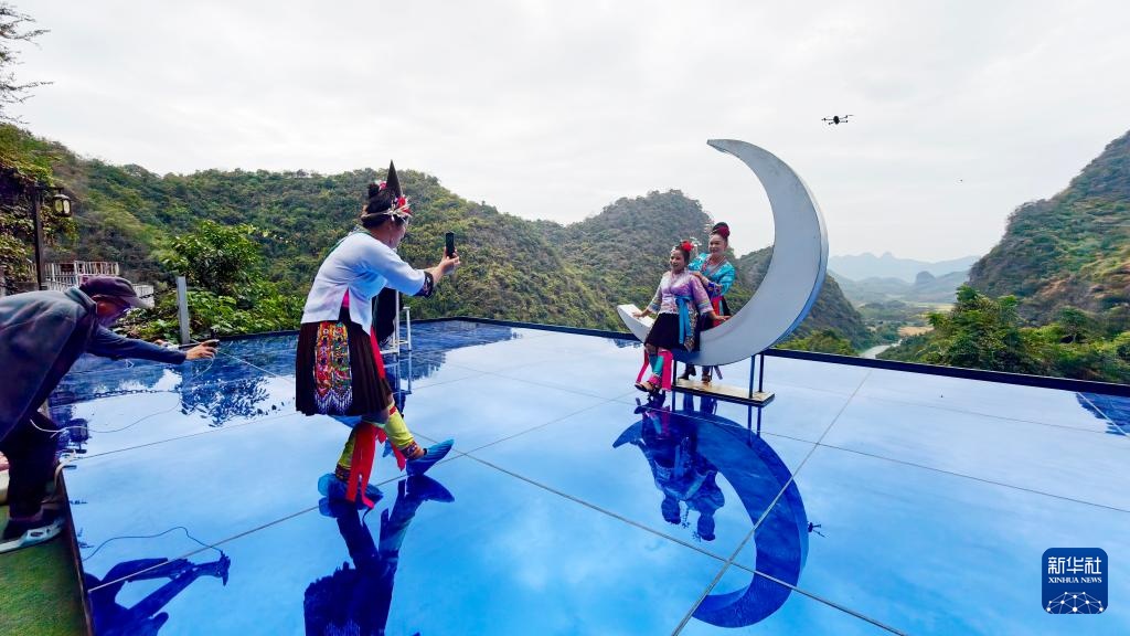 11月1日,在廣西柳州市融安縣大良鎮石門仙湖,游客在景區內游玩。