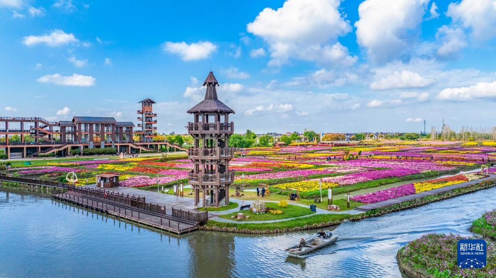 11月2日,游客在江蘇省興化市千垛景區賞菊游玩(無人機照片)。