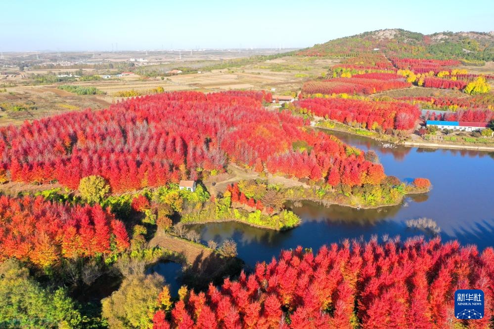 11月2日在山東省青島市即墨區金口鎮拍攝的楓樹林(無人機照片)。