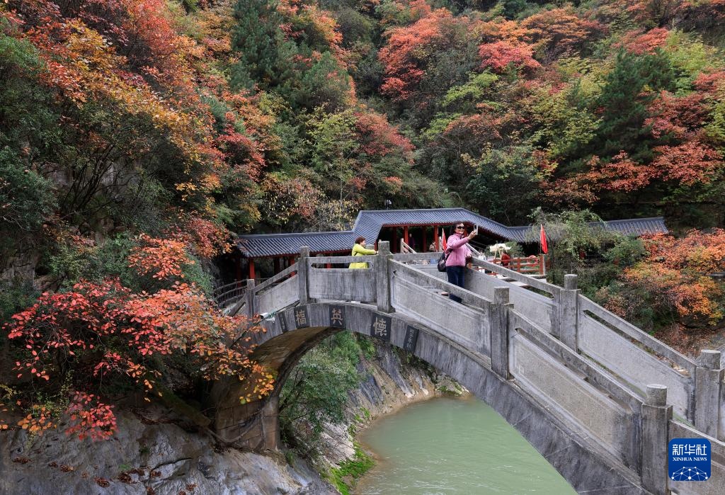 11月1日,游客在甘肅省隴南市成縣西狹頌風景區欣賞秋日景色。