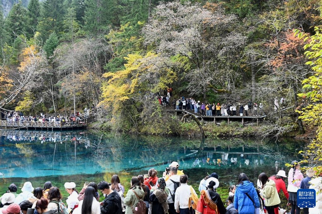 11月1日,在四川省阿壩藏族羌族自治州九寨溝縣,游客在九寨溝風景區游玩。