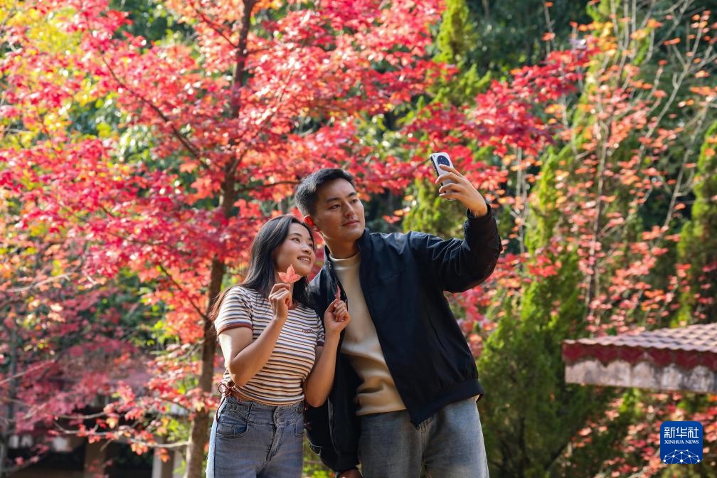 11月1日,游客在云南省昆明黑龍潭公園內拍照打卡。