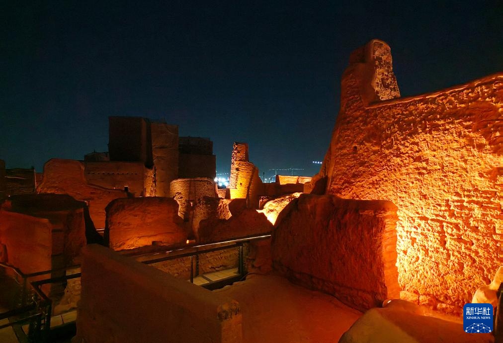 這是10月29日在沙特首都利雅得市區(qū)拍攝的迪里耶夜景。