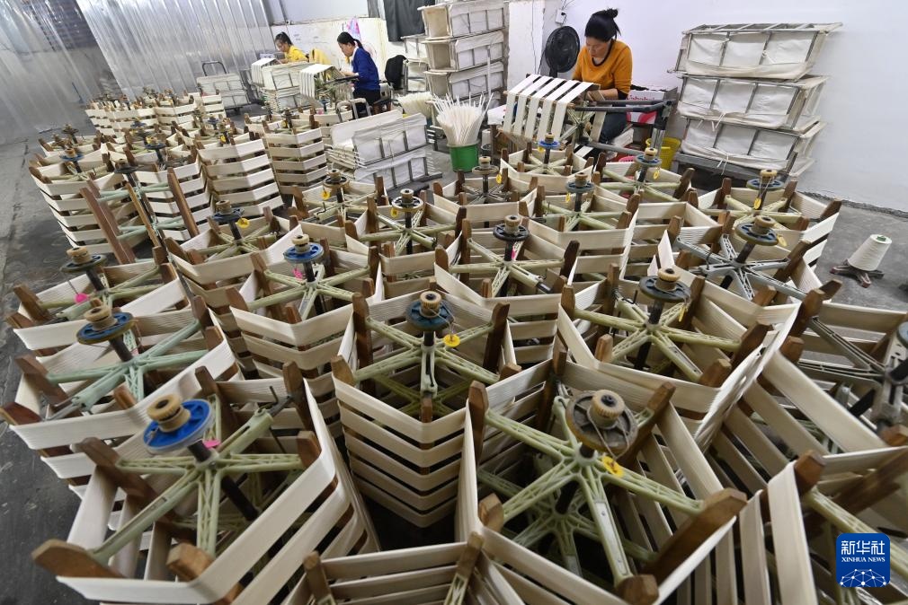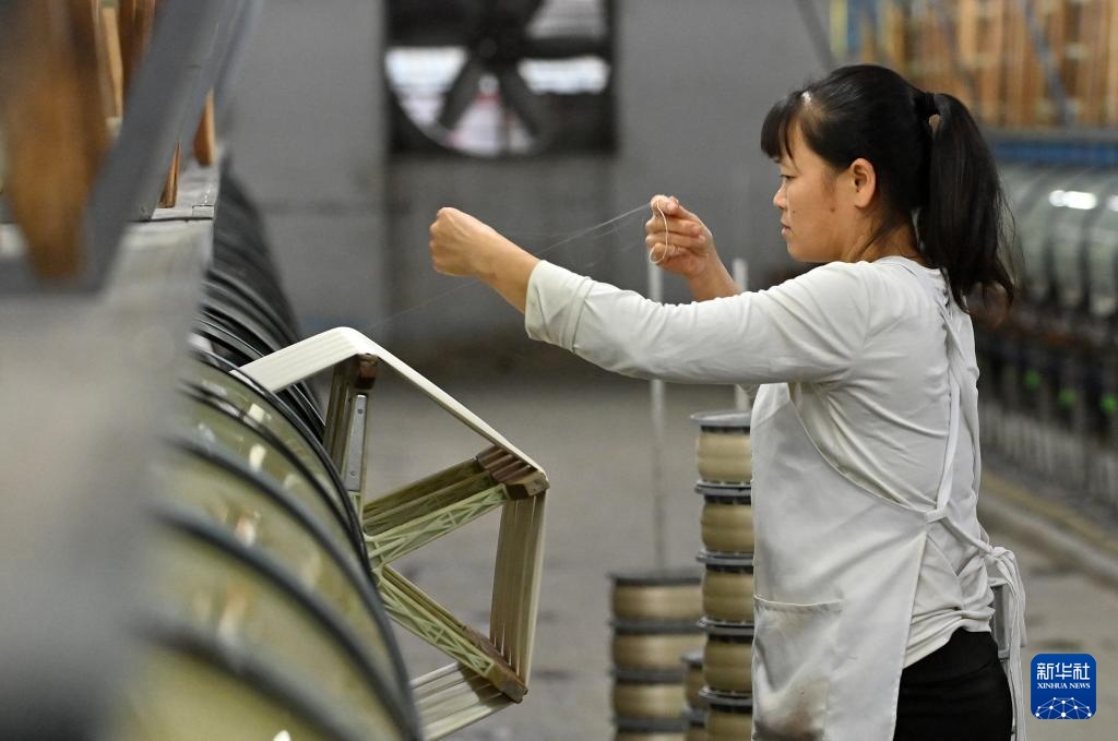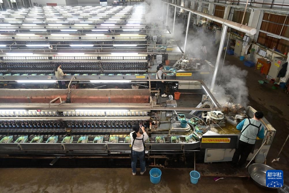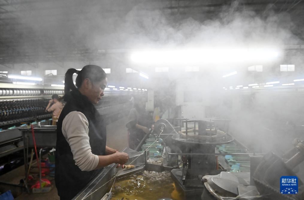 11月4日,工人在廣西忻城縣一家絲綢企業(yè)進行生產(chǎn)作業(yè)。