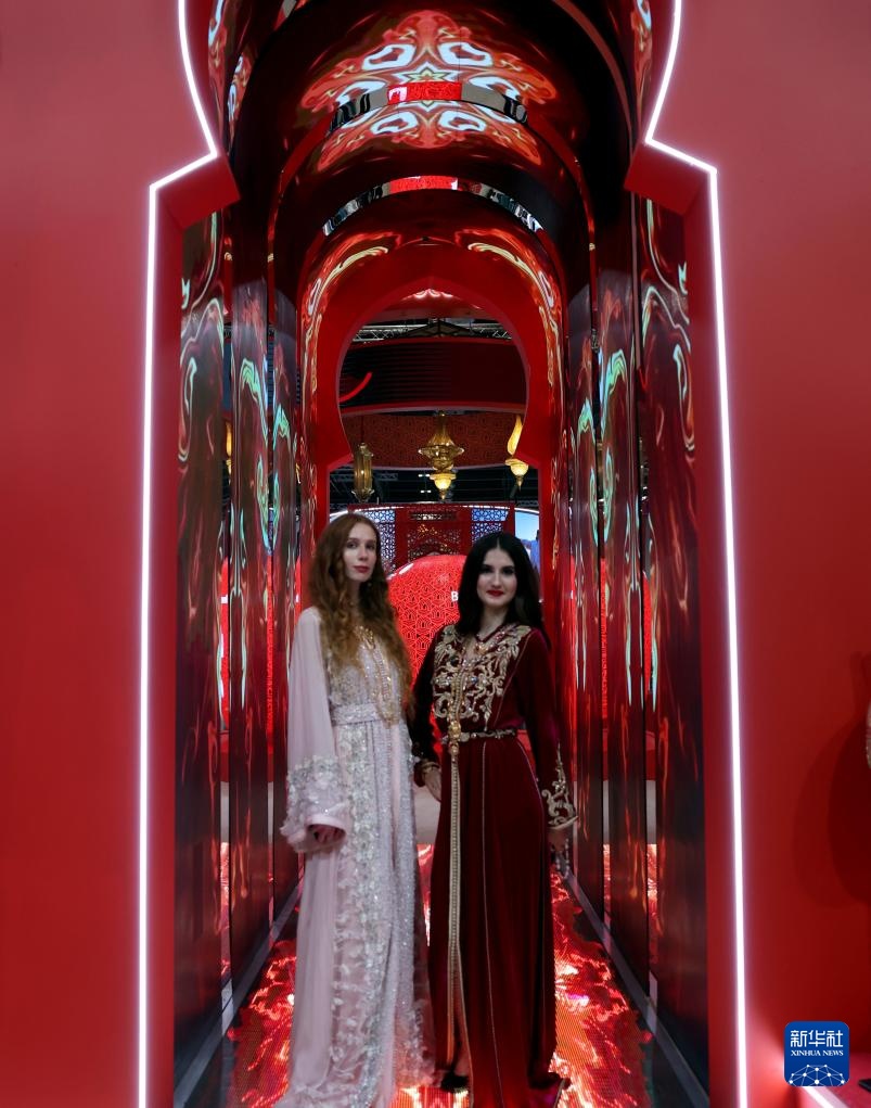 11月4日,在英國(guó)首都倫敦,模特在2025年英國(guó)倫敦世界旅游交易會(huì)摩洛哥展區(qū)合影。