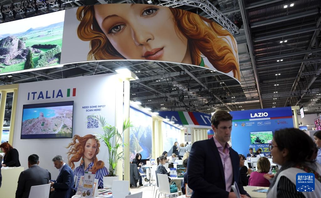 11月4日,在英國(guó)首都倫敦,人們?cè)?025年英國(guó)倫敦世界旅游交易會(huì)意大利展區(qū)洽談。