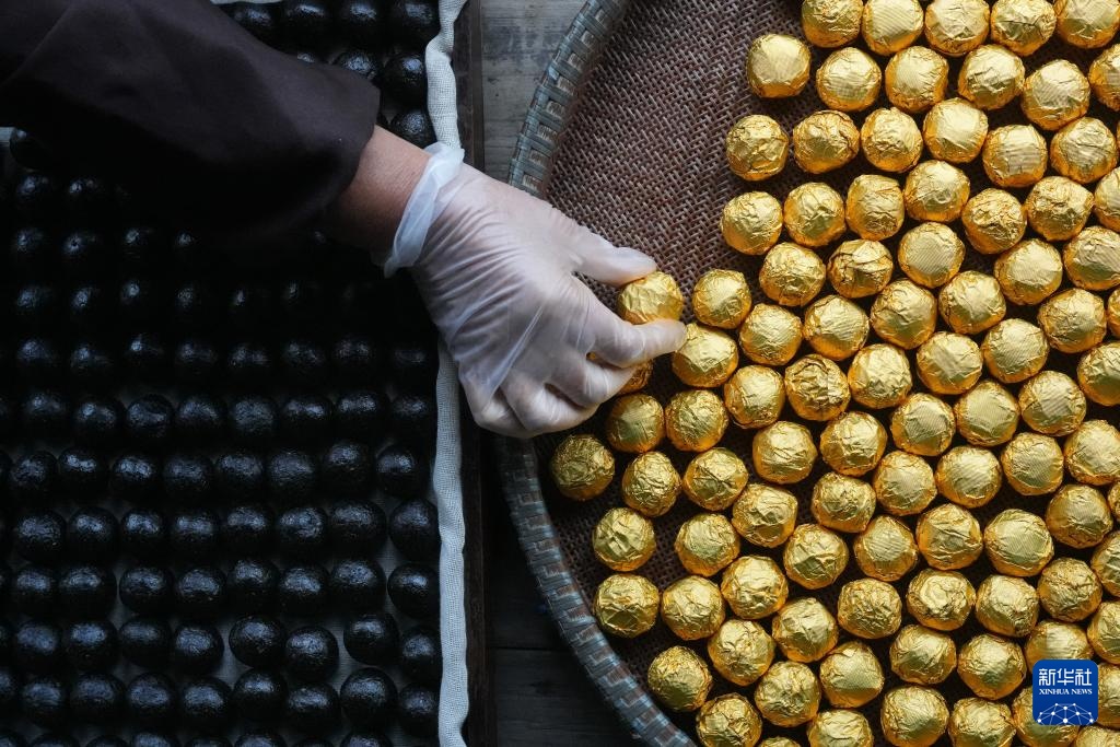 11月4日,太平山村村民在村里的黃精共富工坊制作黃精芝麻丸。