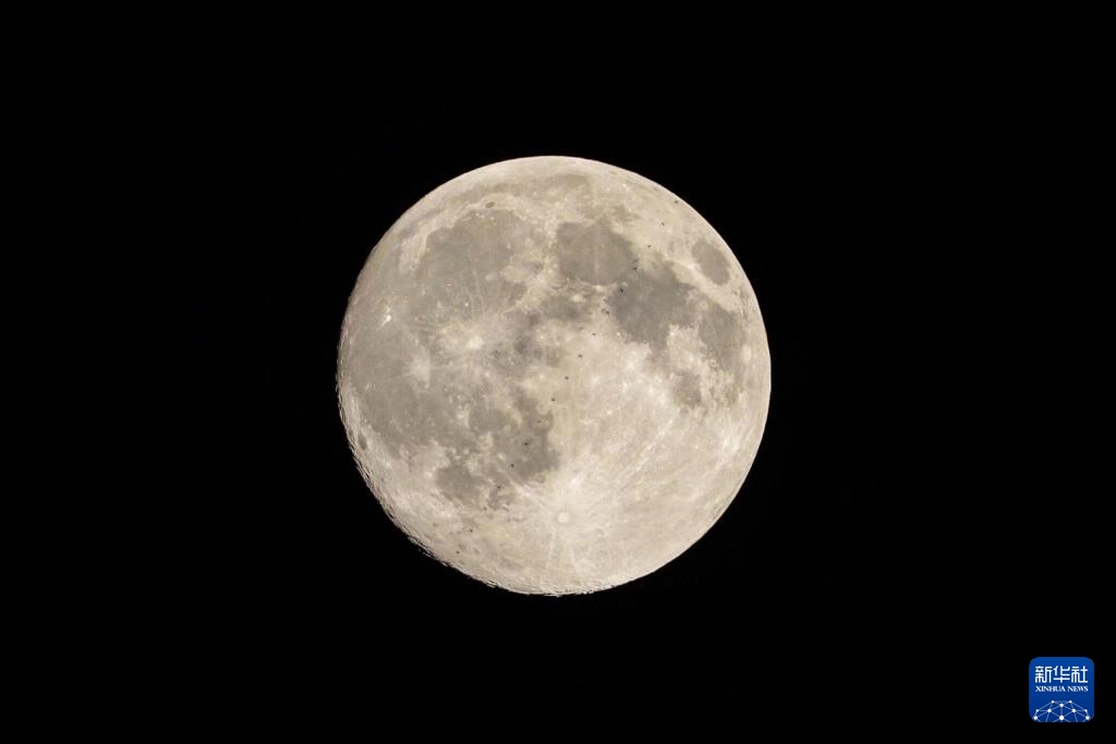11月4日,在北京市昌平區東小口城市休閑公園拍攝的中國空間站飛過圓月的過程(堆棧合成照片)。
