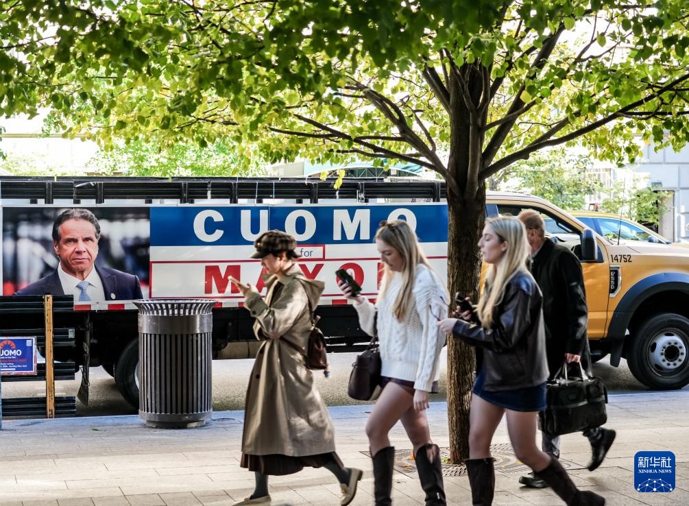 11月4日,在美國紐約,行人經過候選人安德魯·科莫的競選海報。