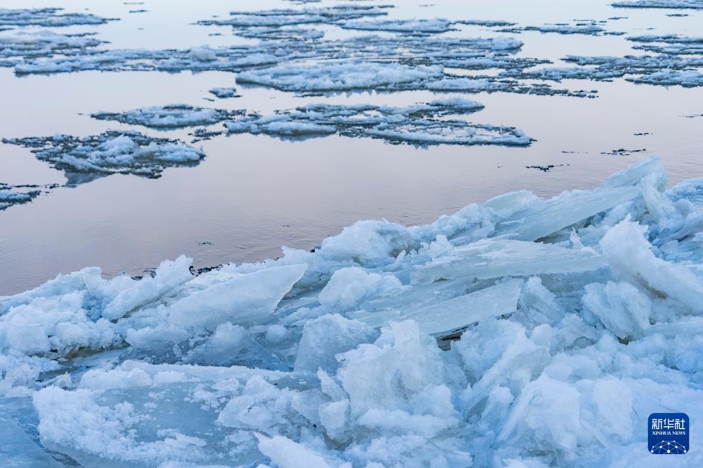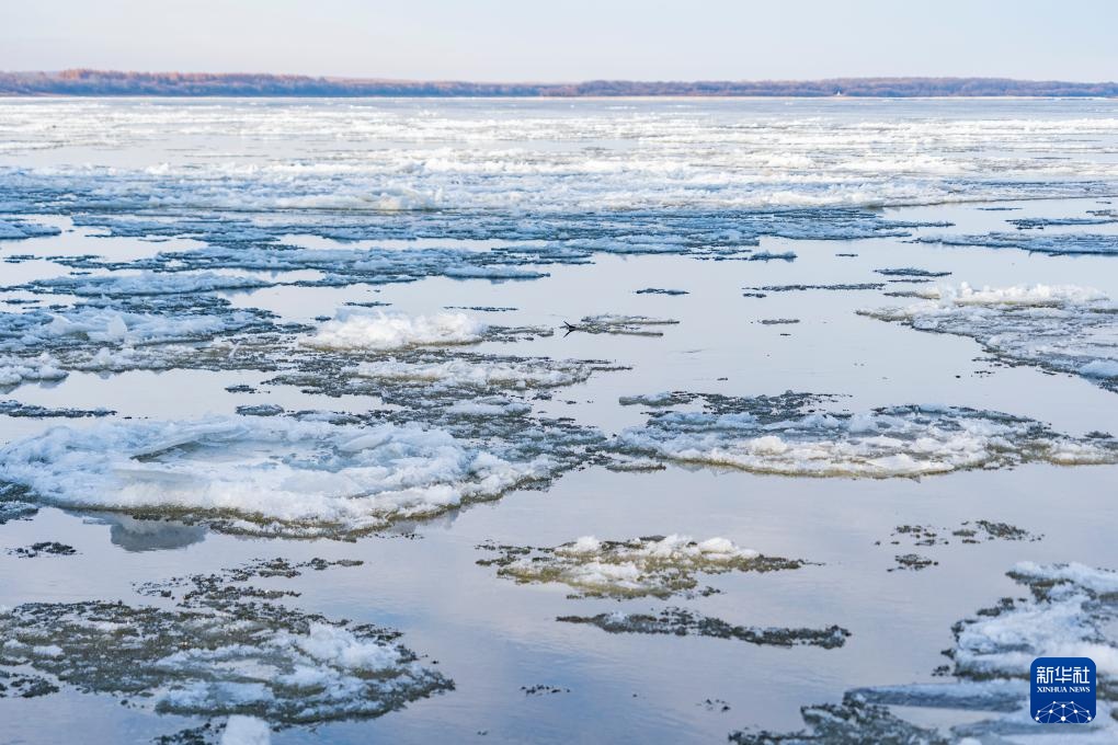 受近期降溫影響,黑龍江嘉蔭段已進入流冰期,浮冰順流而下,如一朵朵冰蓮綻放在寬闊江面之上,呈現出封江前壯闊的自然景觀。