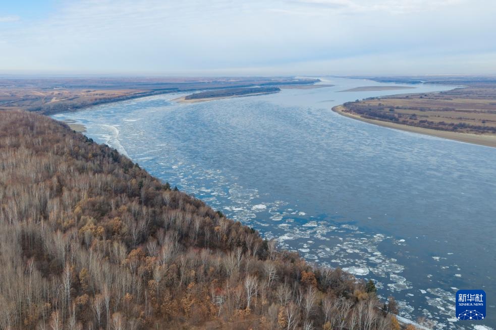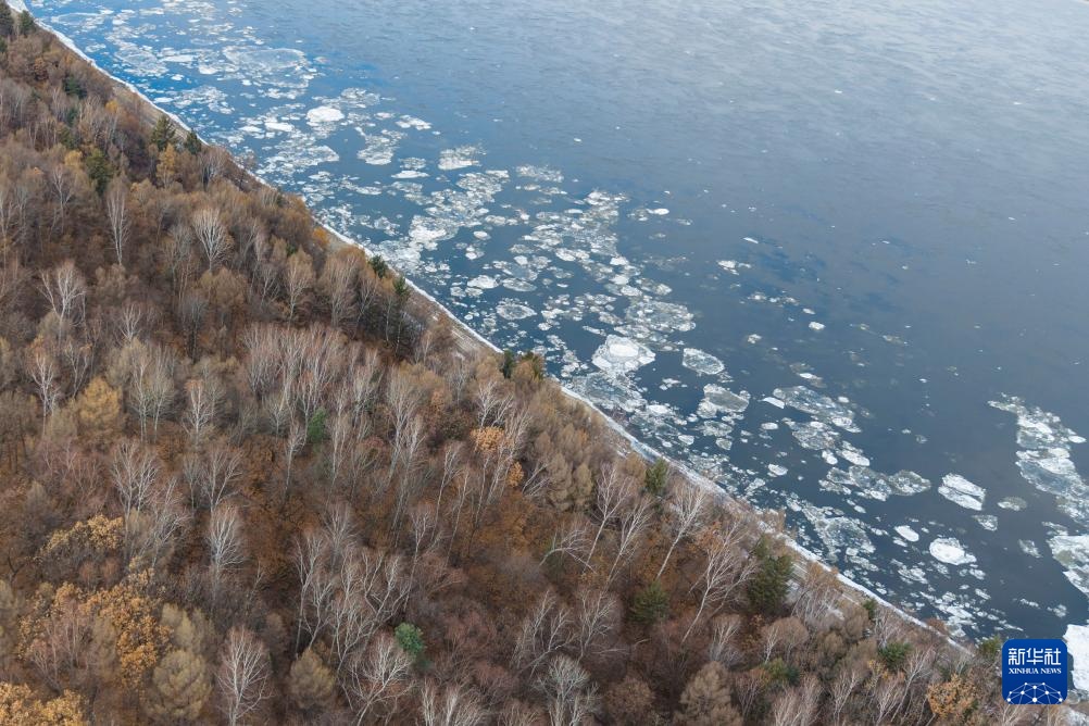 這是11月5日拍攝的處于流冰期的黑龍江嘉蔭段。