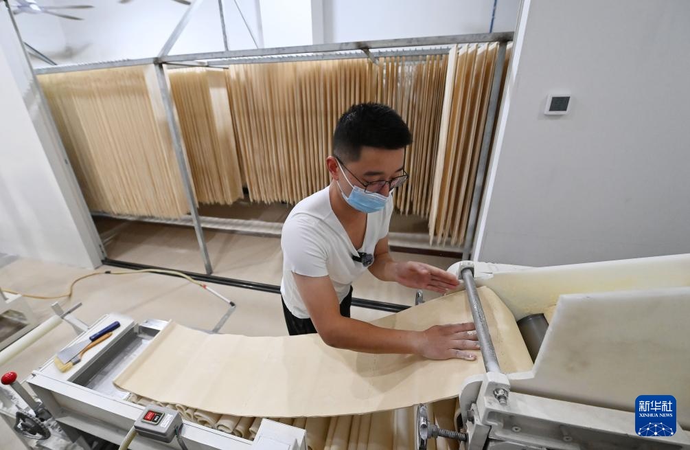 11月5日,喜禾麥面業創始人宋喜在重慶市云陽縣喜禾麥面業的標準作坊制作面條。1989年出生的宋喜從銀行辭職,于2024年開始創業做喜禾麥面業。