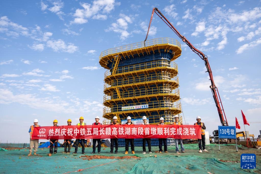 當日,由中鐵五局承建的長贛高鐵關鍵控制性工程機場高速特大橋130號墩完成混凝土澆筑,這是長贛高鐵湖南段首座完成澆筑的橋梁墩柱。