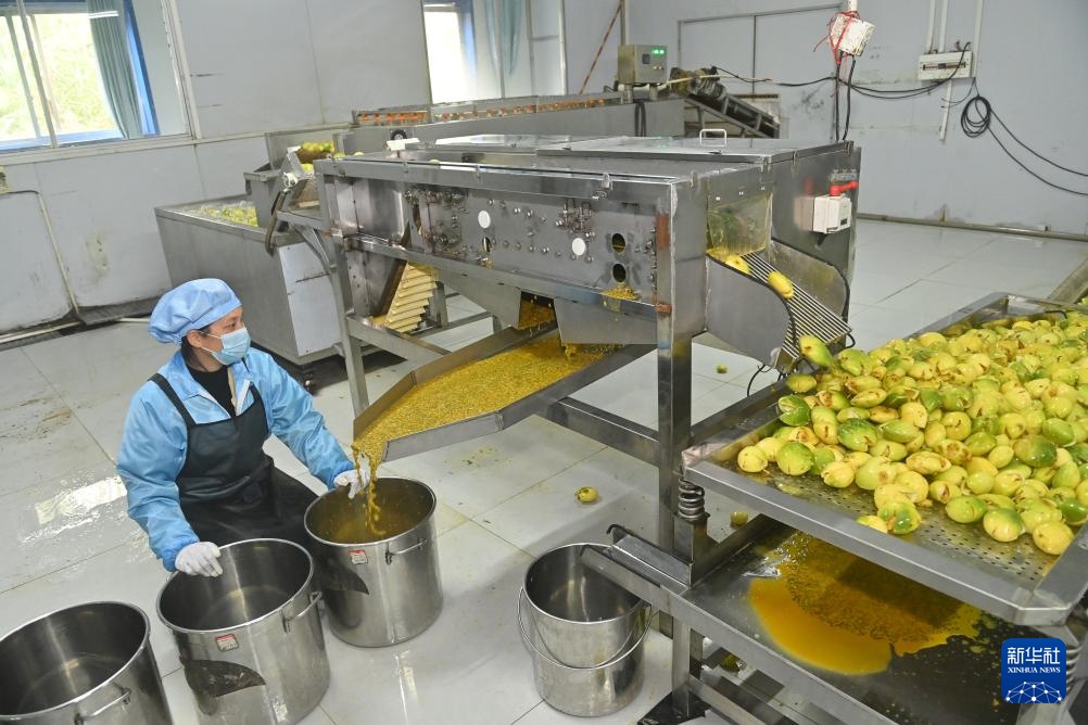 11月5日,在位于歐洞鄉的廣西忻城壯香源農業發展有限公司,工人用機械加工百香果汁。