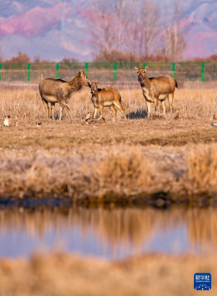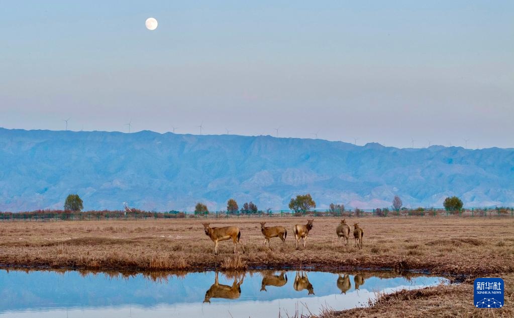 青銅峽庫(kù)區(qū)濕地自然保護(hù)區(qū)總面積174.93平方公里,是寧夏最大的黃河灘涂類型濕地。2024年9月底,35頭麋鹿落戶青銅峽庫(kù)區(qū)濕地自然保護(hù)區(qū),經(jīng)過(guò)一個(gè)月適應(yīng)期后被野放在200余畝的圍欄內(nèi)。目前,隨著6只麋鹿幼崽的誕生,當(dāng)?shù)伧缏狗N群繁育工作邁入新階段,放歸區(qū)域從200余畝擴(kuò)展至3000余畝,保護(hù)工作也從遷地?cái)U(kuò)繁轉(zhuǎn)向野化放歸,開(kāi)啟了黃河流域?qū)幭亩紊锒鄻有员Wo(hù)的新篇章。