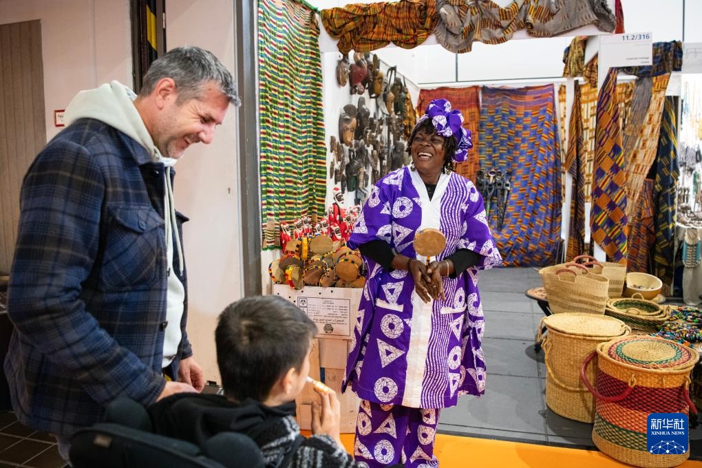 11月5日,人們在德國柏林舉辦的“柏林巴扎”上和加納展商交流。
