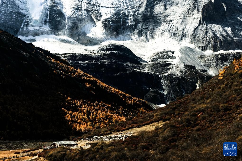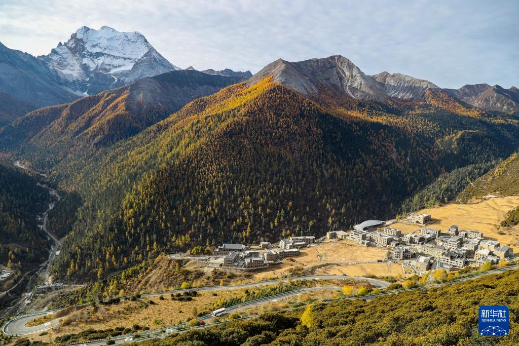 俯瞰雪山下的亞丁村(10月30日攝)。