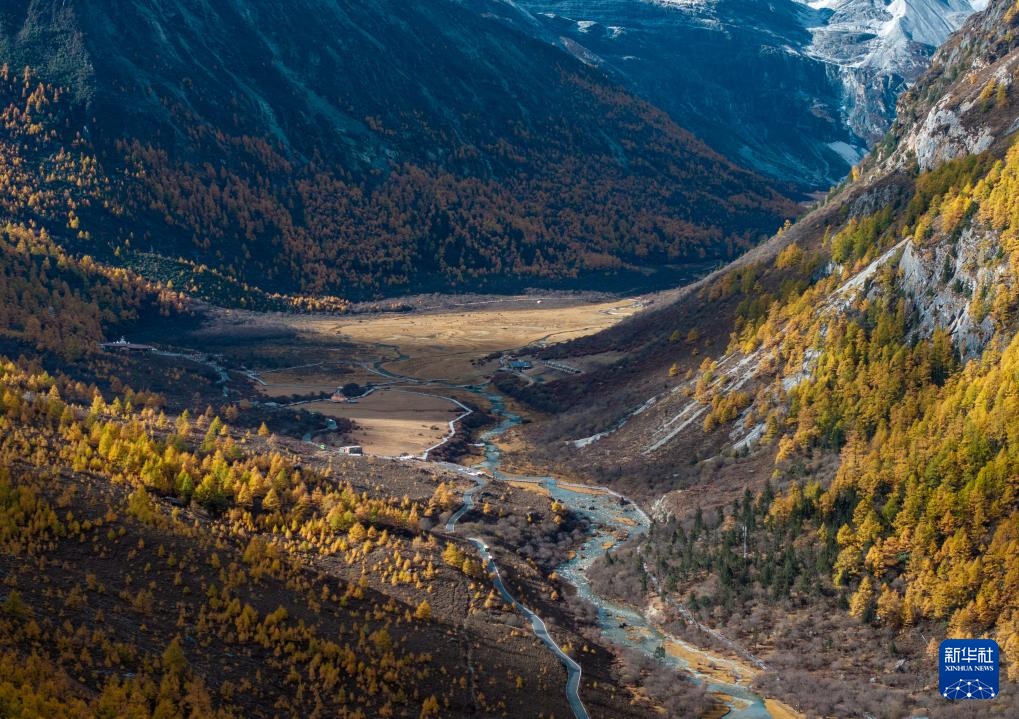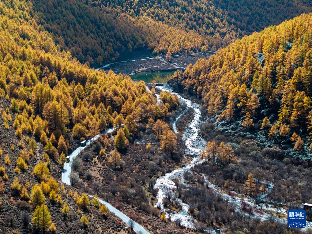 稻城亞丁景區層林盡染(10月28日攝,無人機照片)。