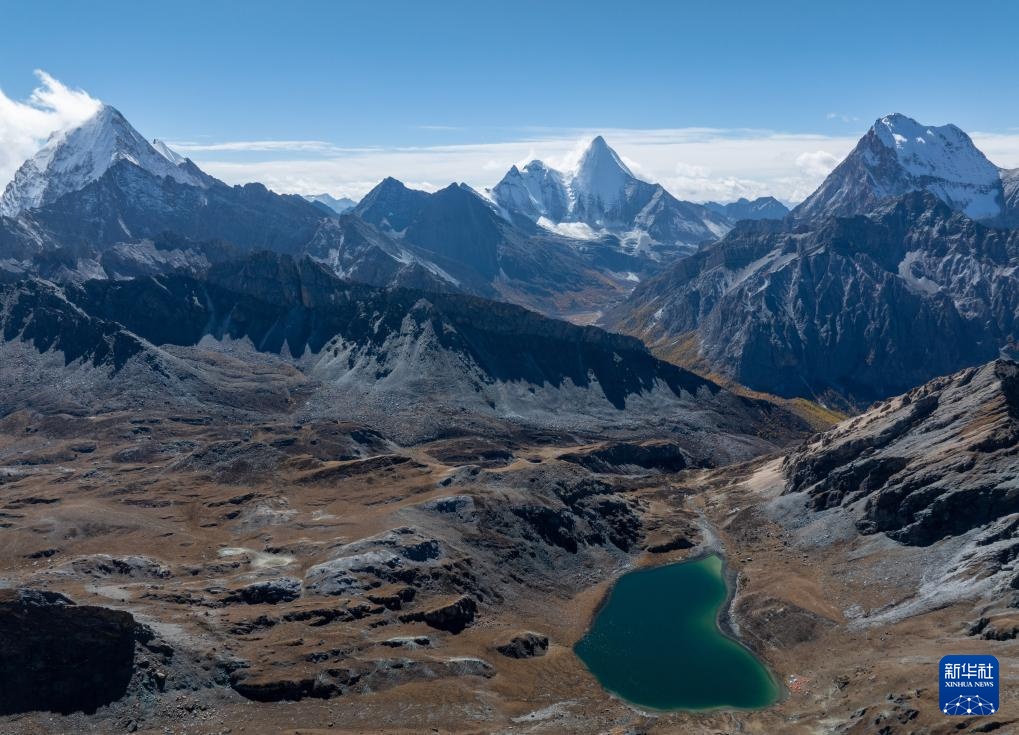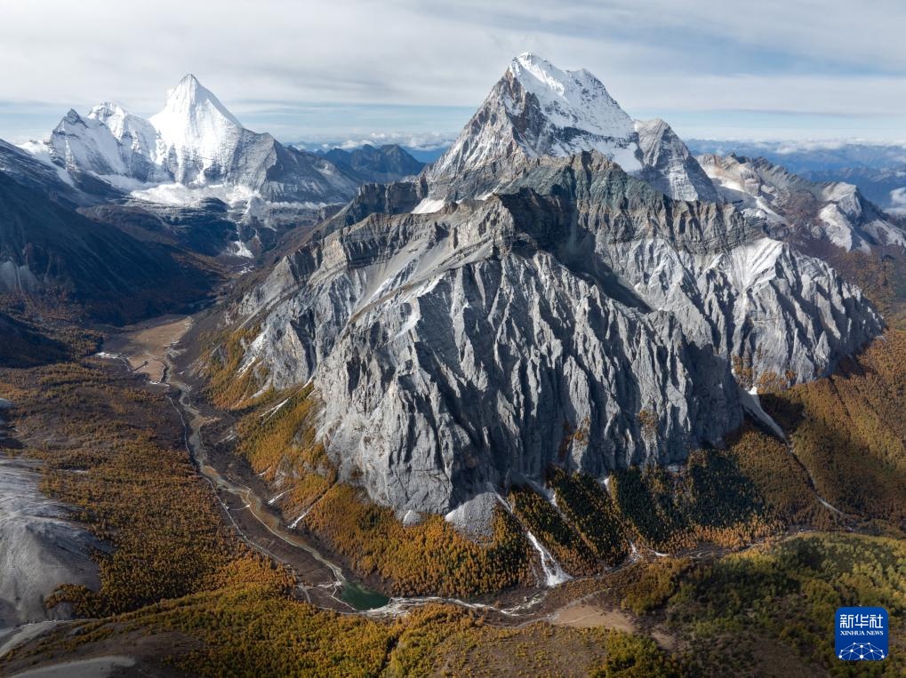 夏諾多吉雪山下的角峰冰川地貌(10月28日攝,無人機照片)。
