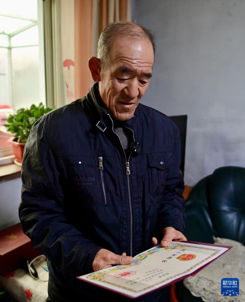 11月5日,楊樹武展示父親的烈士證明書。