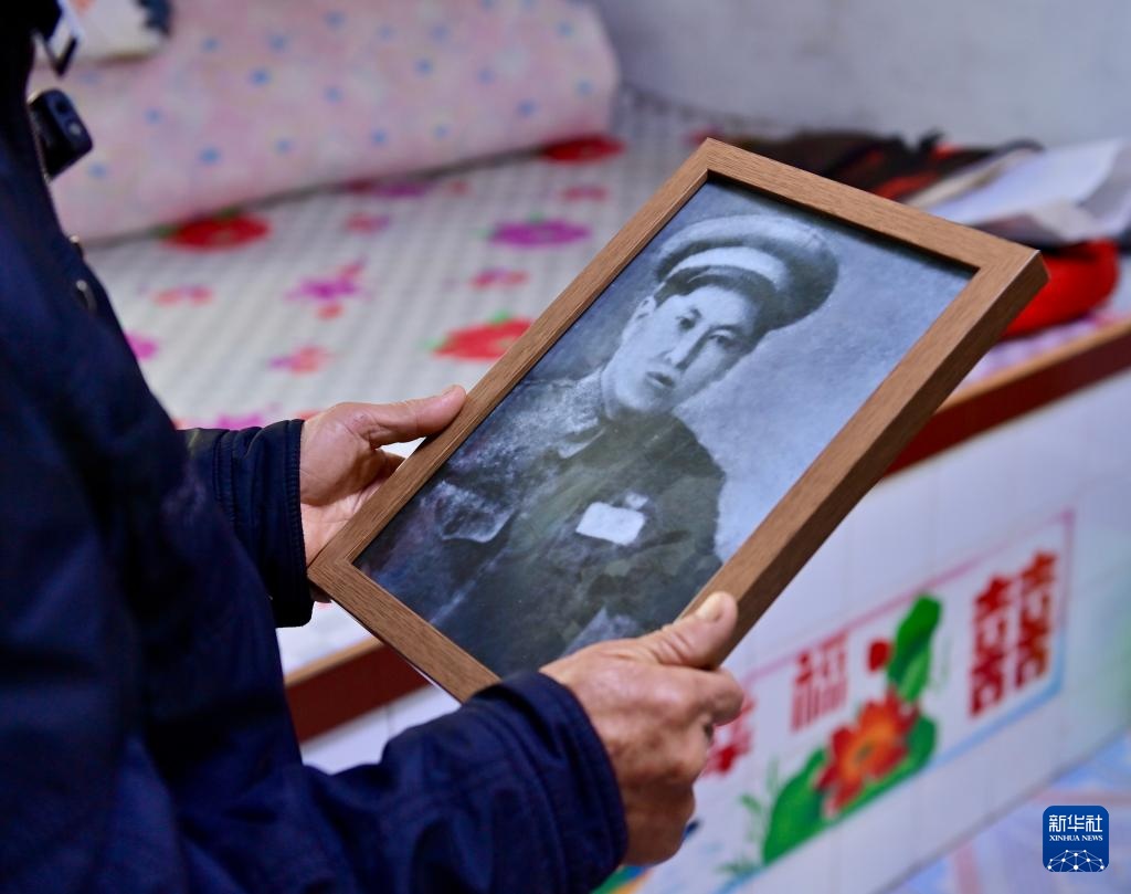 近日,經(jīng)退役軍人事務部組織的遺骸鑒定,有8位韓國移交的中國人民志愿軍烈士遺骸身份得到確認,其中烈士楊忠貴為遼寧丹東鳳城人。近日,新華社記者采訪到楊忠貴烈士的兒子、今年74歲的楊樹武。楊樹武從未見過父親,一直珍藏著父親留下的唯一一張膠片,但由于膠片太老太舊,他找遍了當?shù)氐恼障囵^,也因技術(shù)有限沒能把照片清晰洗出來。記者將膠片帶回沈陽,幾經(jīng)周折找到一家掌握老照片洗印技術(shù)的沖洗店,經(jīng)過反復沖洗和修復,終于洗出了一張清晰的照片,并于11月5日將照片帶給楊樹武,讓父子時隔74年終于“相見”。