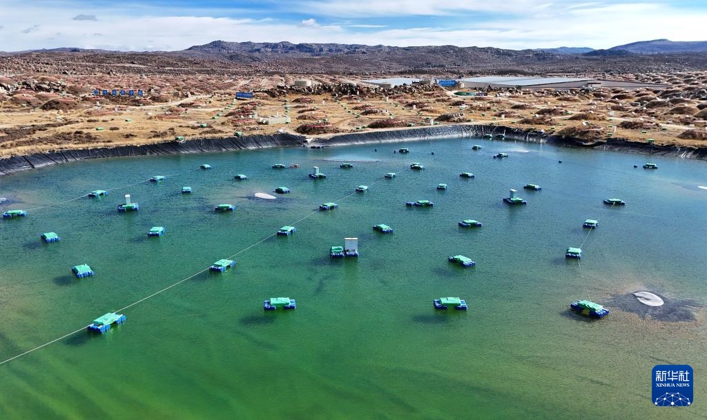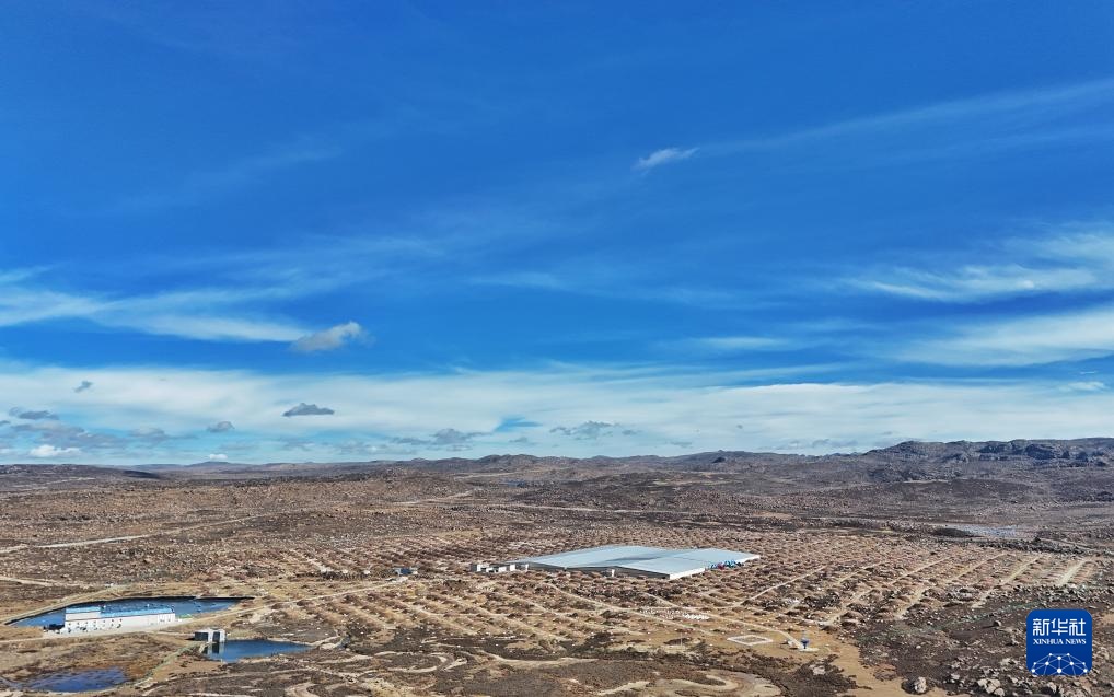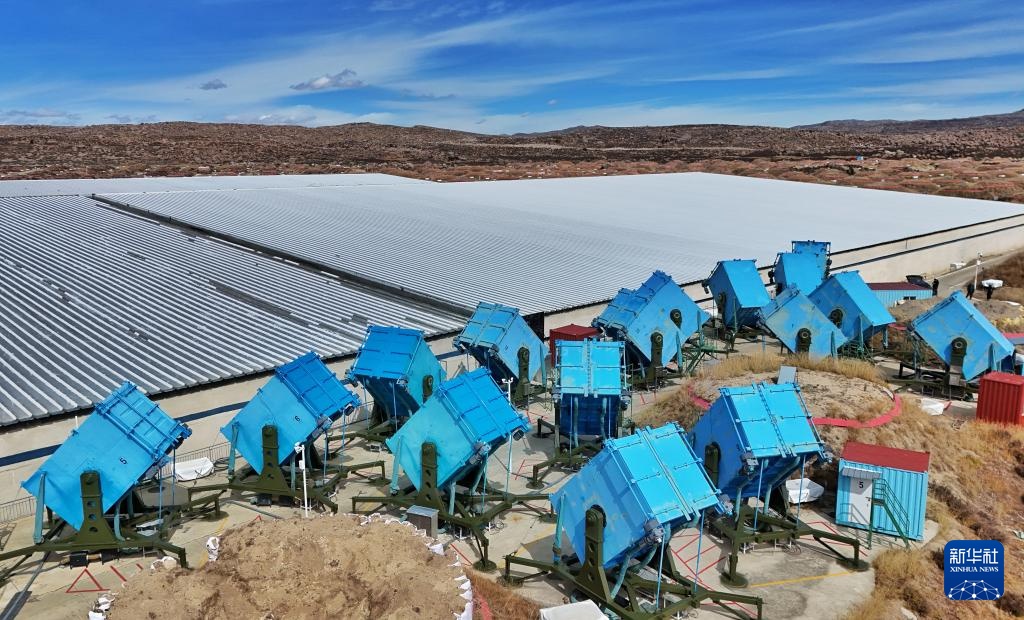 “藍箱子”里裝著廣角切倫科夫望遠鏡,構成廣角切倫科夫望遠鏡陣列(10月28日攝,無人機照片)。