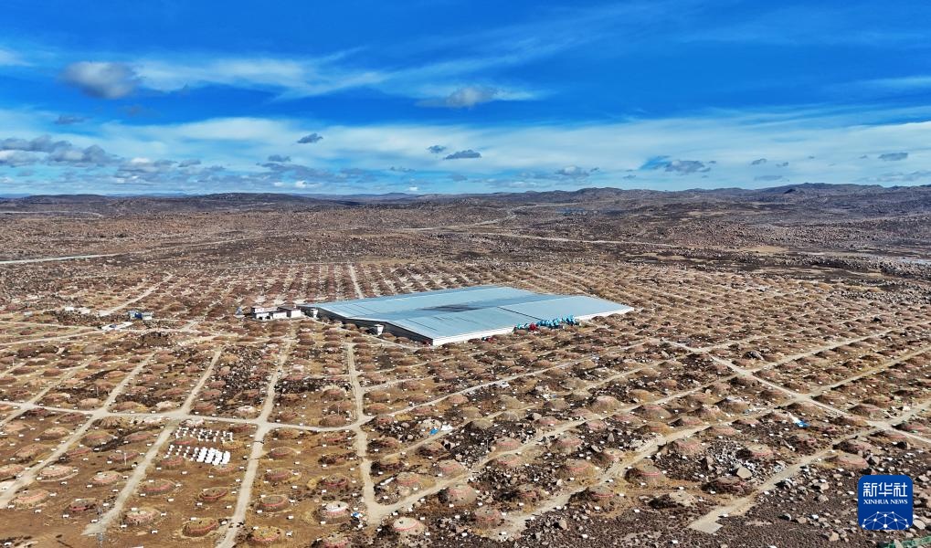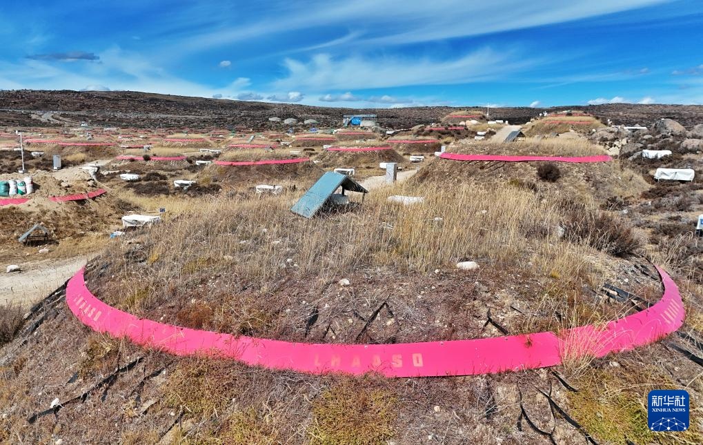 這是地面簇射粒子探測器陣列。埋在一個個“大土包”下面的1188個繆子探測器,和地面上一個個如“方盒子”的5216個電磁粒子探測器,它們共同組成地面簇射粒子探測器陣列(10月28日攝,無人機照片)。