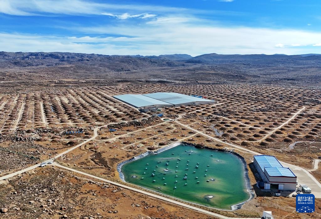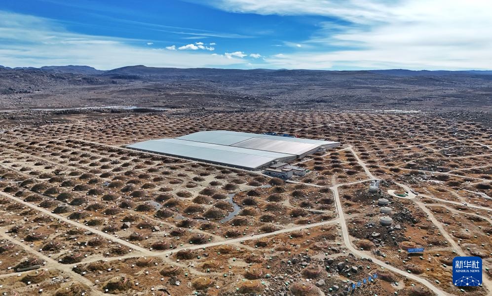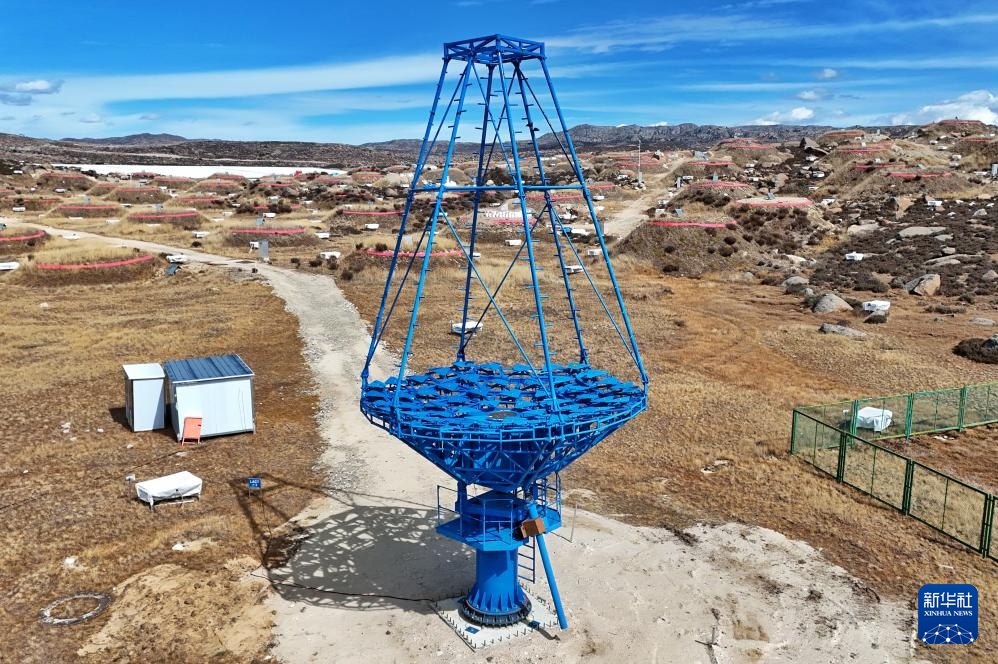 這是高海拔宇宙線觀測站內的大型超高能伽馬源立體跟蹤裝置(LACT)(10月28日攝,無人機照片)。