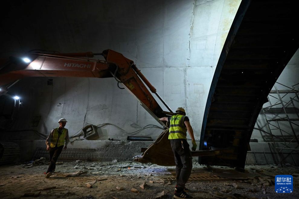 9月11日,工人在塔吉克斯坦卡拉依洪姆村附近的中塔公路二期工程1號隧道施工現(xiàn)場工作。