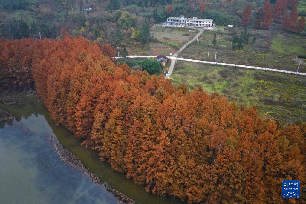 位于漢中市南鄭區(qū)的龍池村秋色(11月4日攝,無(wú)人機(jī)照片)。