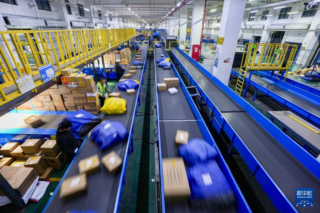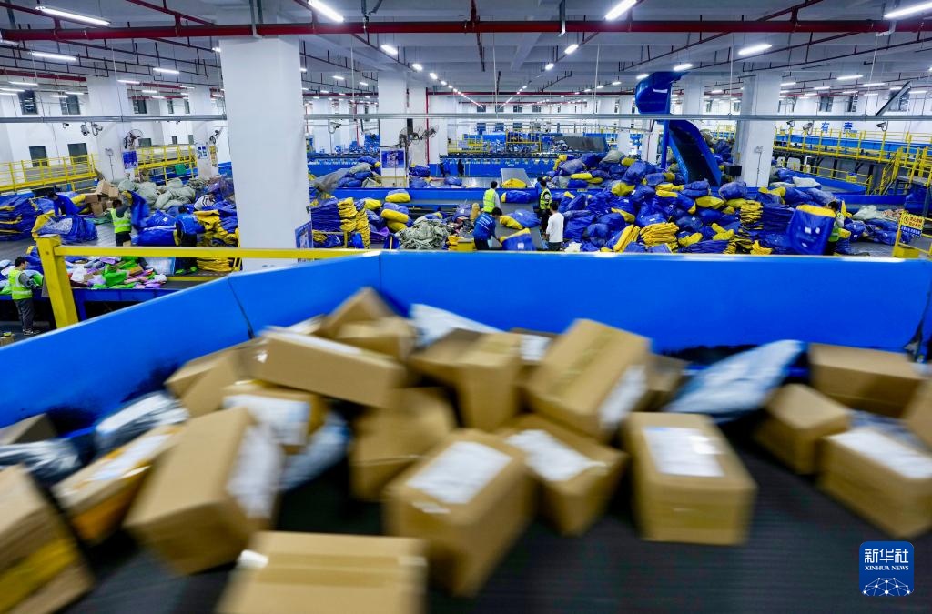 11月11日,在位于寧夏銀川市賀蘭縣的中通快遞寧夏管理中心內,工作人員分揀快遞。