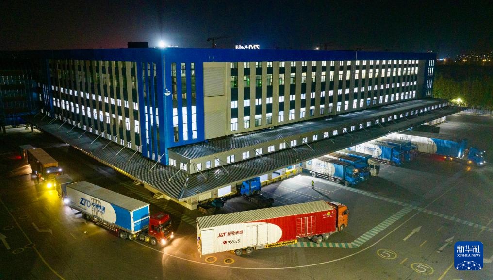 這是11月11日拍攝的位于寧夏銀川市賀蘭縣的中通快遞寧夏管理中心(無人機照片)。