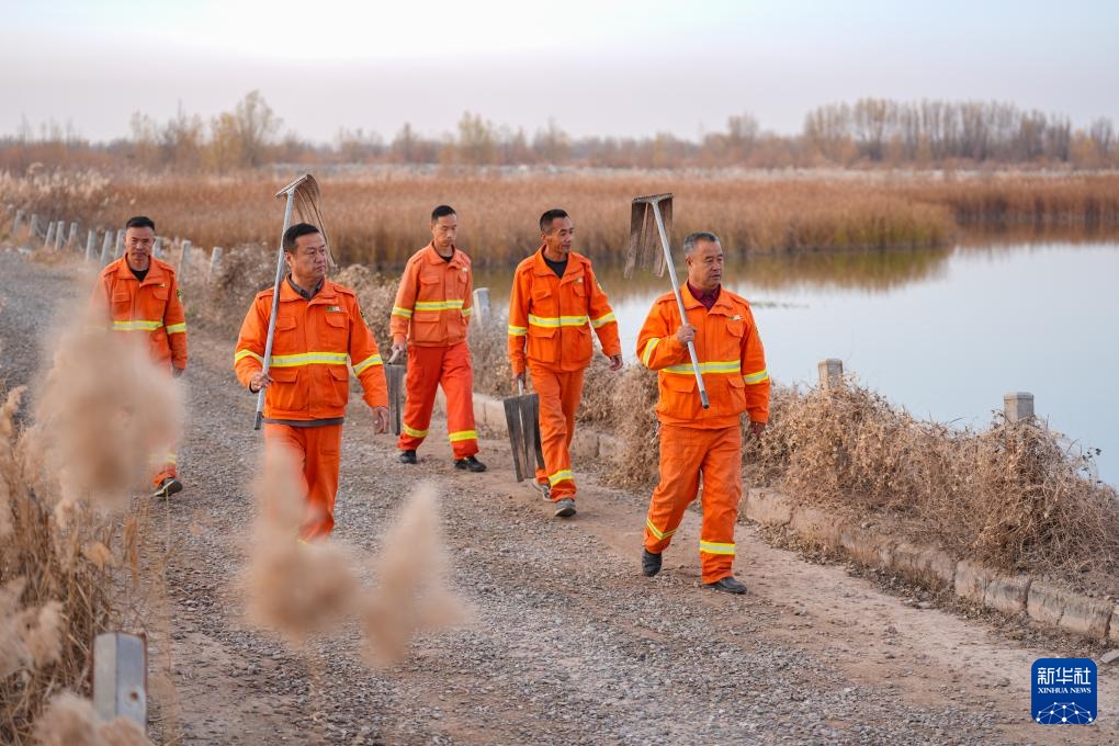 11月11日,工作人員在寧夏平羅天河灣國家濕地公園內巡查。
