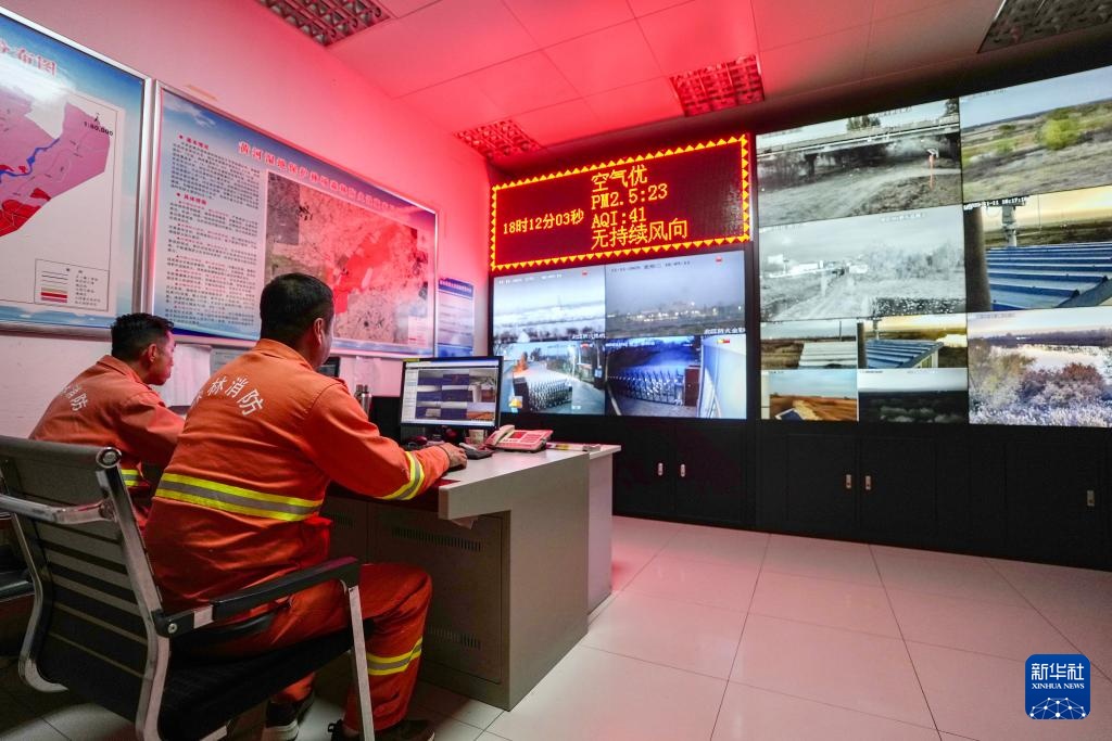 11月11日,工作人員在寧夏平羅天河灣國家濕地公園監控室內通過智能監測平臺監測濕地情況。