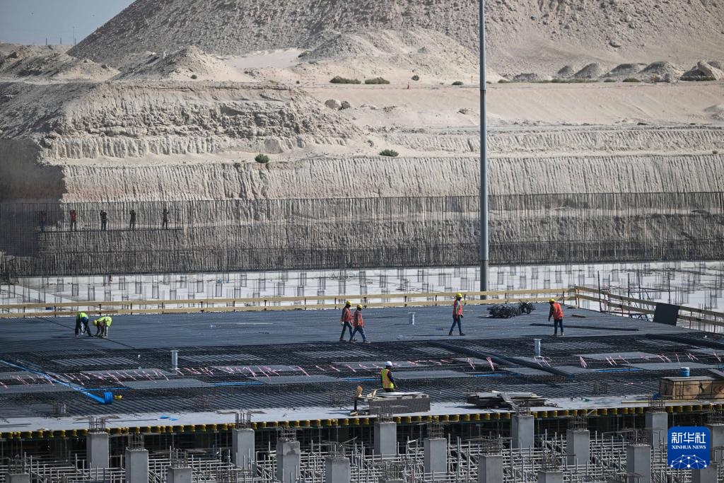 2025年11月1日,在科威特杰赫拉省,工人在南薩阿德阿卜杜拉新城基礎設施項目施工現場工作。