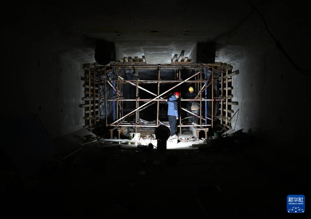 11月13日,工人在平漯周高鐵湛葉舞特大橋C段連續梁合龍施工現場進行混凝土搗固作業。