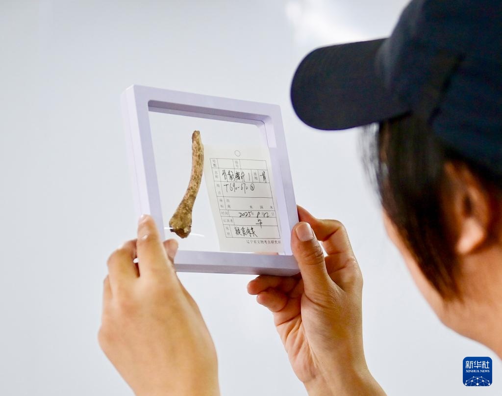 9月28日,于懷石在位于遼寧朝陽的牛河梁工作站內查看骨骸殘件。