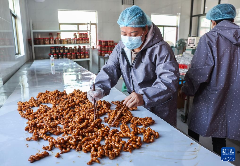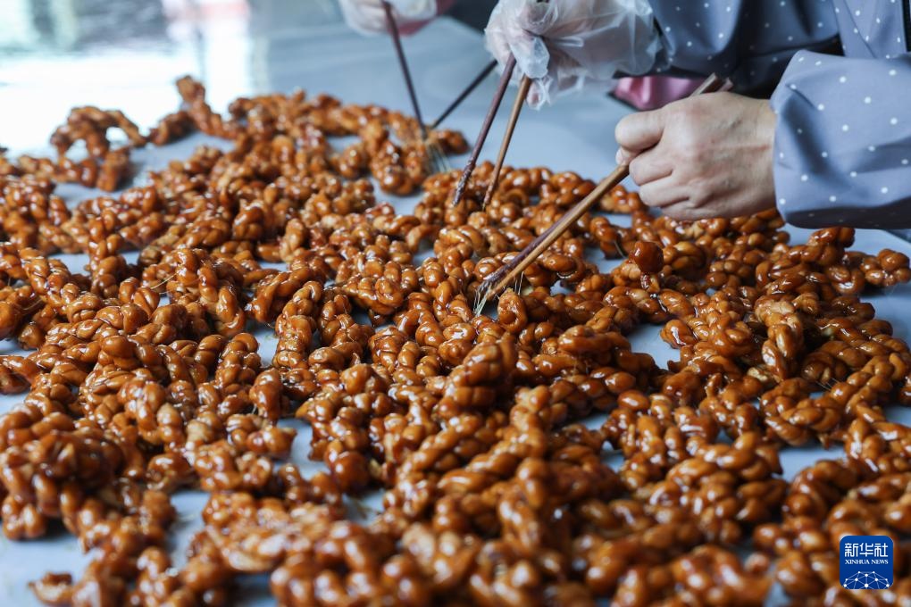 這是剛剛做好的紅糖麻花,也是當地的冬季傳統美食(11月15日攝)。