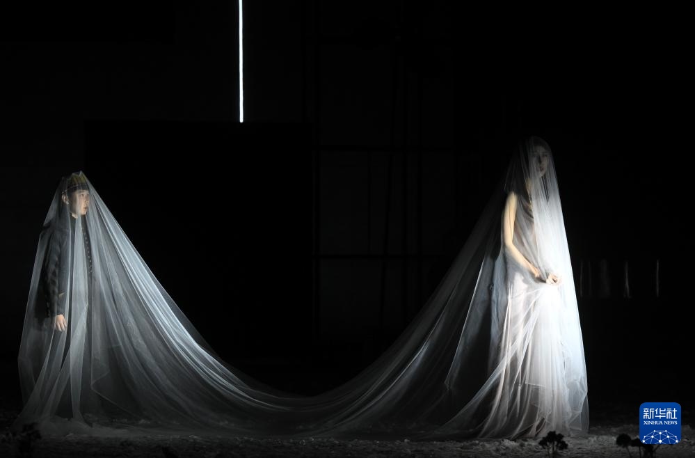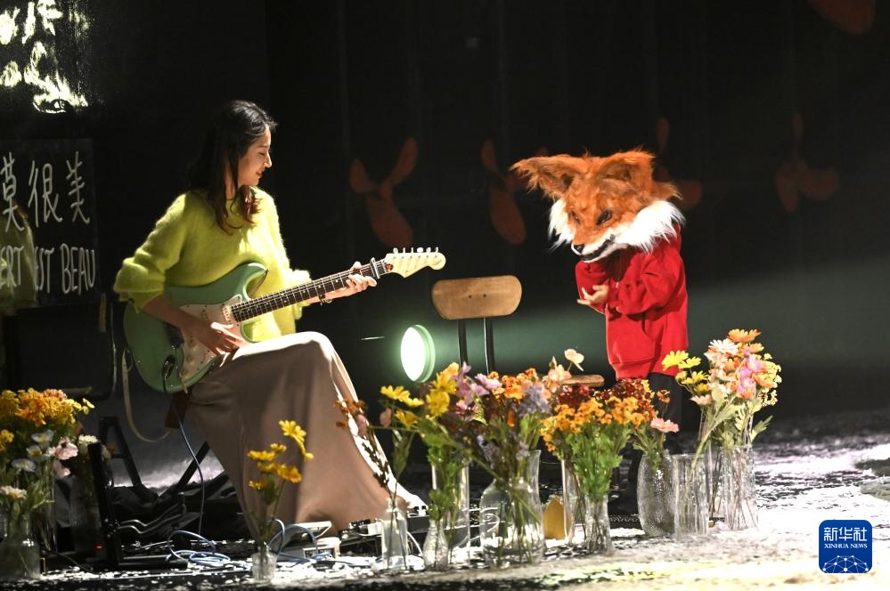 11月15日,演員李一辰(右二)、凡清(右一)在音樂戲劇《小王子》中表演。