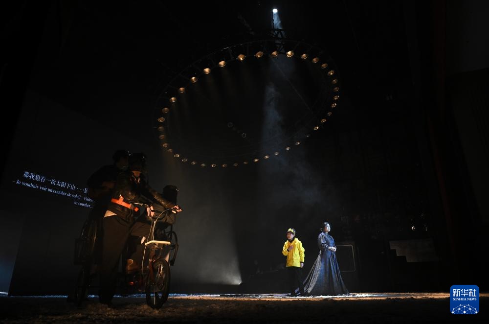 11月15日,演員李一辰(中)、金珍禾(左)、弗朗索瓦在音樂戲劇《小王子》中表演。