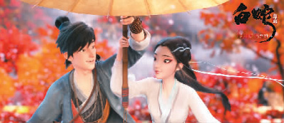 看片名就知道,這部動畫片取材于我們耳熟能詳的民間傳說《白蛇傳》,但它沒有照搬膾炙人口的原版故事,而是以白蛇和許仙的愛情前傳的形式,往前編演了500年,將故事的發生時間鎖定在晚唐,講述了少女小白和青年捕蛇人阿宣感人至深的戀情,解答了我們以往的一個疑問:為什么法力高強、美麗溫柔的白娘子會鐘情懦弱糊涂的許仙?影片挖掘了傳統文化中的愛情元素,但在戀情的表現上更為現代、時尚,洋溢著青春氣息的小白和阿宣讓人感受到初戀的甜蜜,他們突破人妖之間的壁壘,為了真愛奮不顧身,感人至深。在視覺效果上,影片營造了一個具有東方古典美的世界,廣闊江面上的一葉扁舟、地下神秘莫測的五行空間和異想天開的寶青坊等許多場景,都是中國傳統美學與創新性想象的融合。