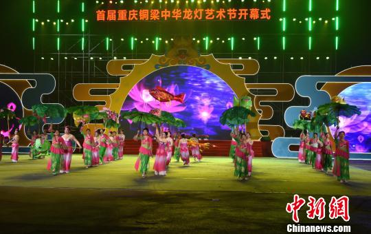 圖為首屆重慶銅梁中華龍燈藝術節開幕式暨亮燈儀式現場,荷花龍表演。 周毅 攝
