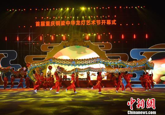 中新網重慶1月14日電 (記者 鐘旖)首屆重慶銅梁中華龍燈藝術節開幕式暨亮燈儀式13日晚舉行。在未來的一個多月時間里,享有“中華龍鄉”美譽的重慶市銅梁區將變身“燈的海洋”,亮起150組造型各異、色彩斑斕的龍燈燈組,喜迎2019年新春佳節到來。
