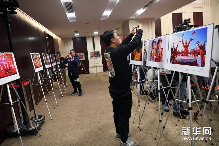 1月16日,記者在發布會上拍攝“歡樂春節”圖片展。新華社記者金良快攝