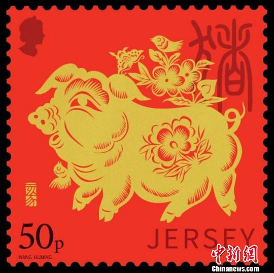 中國農歷乙亥豬年將近,英屬澤西郵政于近日面向全球發行了以“金豬送福”為主題的生肖剪紙郵票和首日封。郵票采用的剪紙圖樣由中國剪紙國家級代表性傳承人段建珺設計,郵票整體設計由中國郵票設計名家王虎鳴負責。